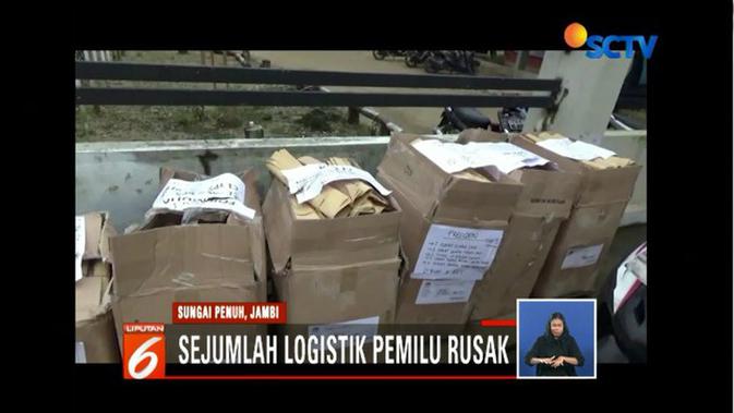 Liputan6.com, Jambi - Banjir yang terjadi di sejumlah wilayah di Provinsi Jambi berdampak pada persiapan Pemilu 2019. Banjir merusak logistik Pemilu yang disimpan di kantor KPU Kota Sungai Penuh.