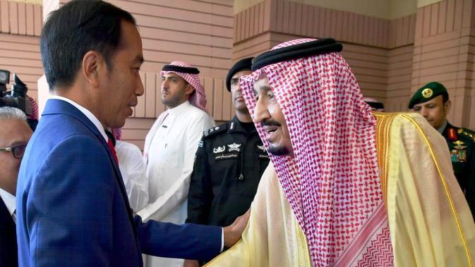 Liputan6.com, Jakarta - Presiden Joko Widodo atau Jokowi beserta Ibu Negara Iriana Widodo bertemu dengan Raja Salman bin Abdulaziz al-Saud di Istana Pribadi Raja di Riyadh, Arab Saudi pada Minggu 14 April 2019.